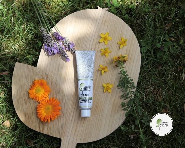 Blauwe crème: herstellende en verzachtende crème op basis van plantenextracten uit onze West-Europese traditie. Een ideale SOS-crème voor in de reis-apotheek!